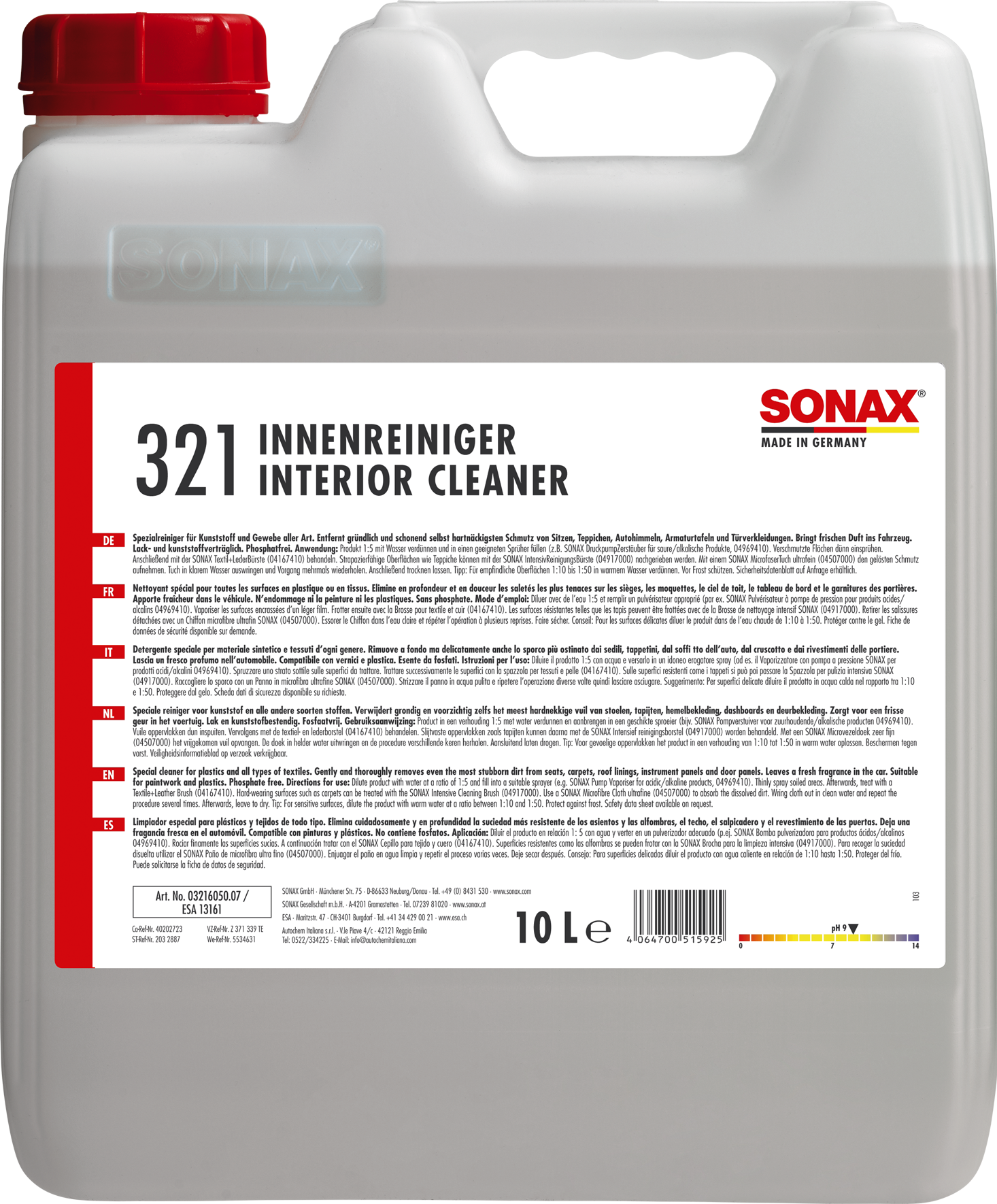 Μπορεί να χρησιμοποιηθεί στο εσωτερικό του οχήματος με τα προϊόντα SONAX PROFILINE: Multistar (627341 & 627600), Καθαριστικό εσωτερικού χώρου (321605), Αφρός καθαρισμού δέρματος (270300) και Φροντίδα ευαίσθητων επιφανειών (286300). Ρίξτε το προϊόν της επιλογής σας που θέλετε να αφροποιήσετε στο μπουκάλι στην κατάλληλη αραίωση. Συνιστάται σωστή και ακριβής αραίωση. Στην ετικέτα του μπουκαλιού μπορείτε να γράψετε πιο προϊόν έχει προστεθεί και σε ποια αραίωση. Πατώντας το κουμπί αφρού,ο αφρός βγαίνει από την πλευρική οπή του ψεκαστήρα. Το μπουκάλι πωλείται άδειο.